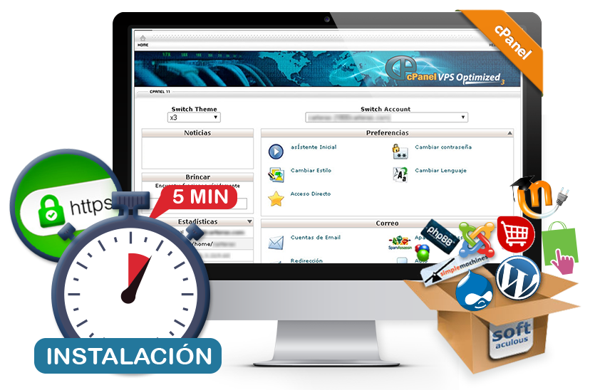 cPanel te permite: Administrar tu Hosting, Crear Cuentas de Correo y Bases de Datos, Adicionar Dominios y Sub-Dominios, Instalar Scripts, y mucho más....